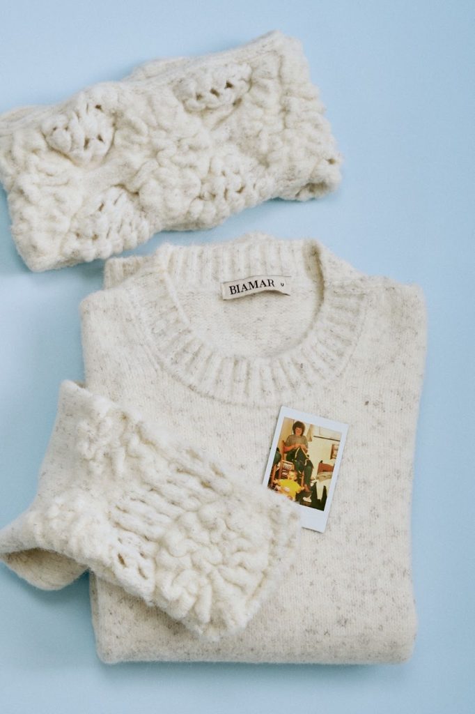 A coleção traz 21 itens entre vestidos, blusas, casacos, saias e acessórios, com foco em peças atemporais e shapes acolhedores. O destaque está nos pontos — essência da marca — que ganham novas interpretações nesta temporada. Entre eles, a evolução do ponto margarida, agora desdobrado no ponto Peônia, além do ponto favo e do ponto raiz, que reforçam o cuidado artesanal e a identidade têxtil da Biamar.