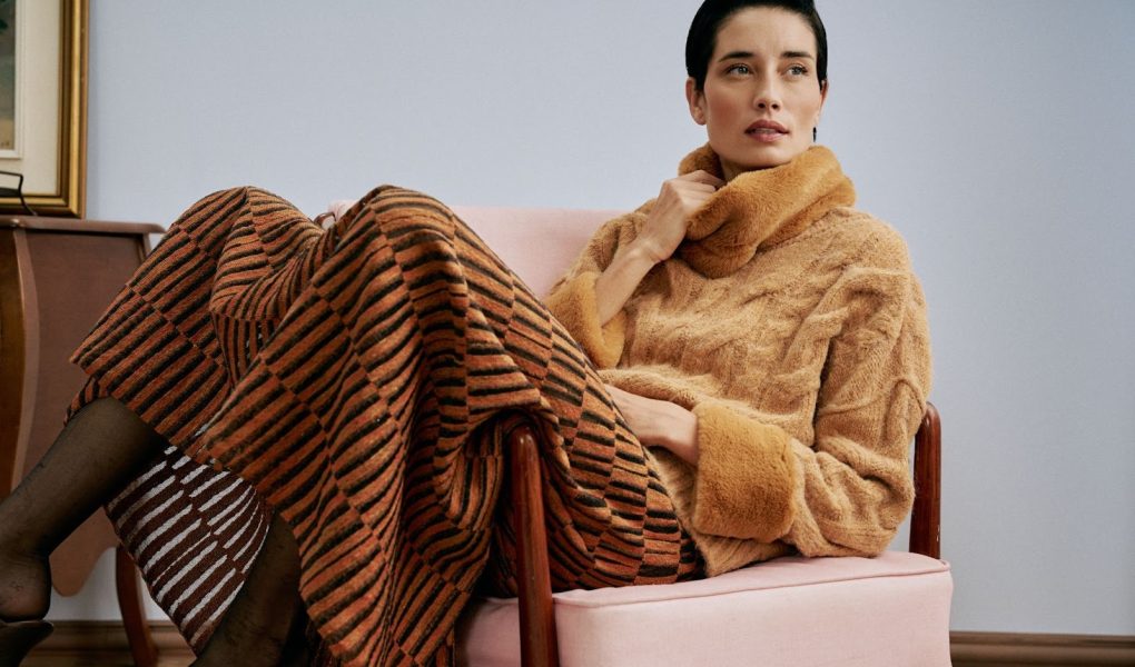 A cartela de cores percorre tons clássicos e elegantes, como marrom, bege, preto e branco, enquanto as padronagens exploram tranças e arans — elementos tradicionais que reafirmam uma estética sofisticada e duradoura.